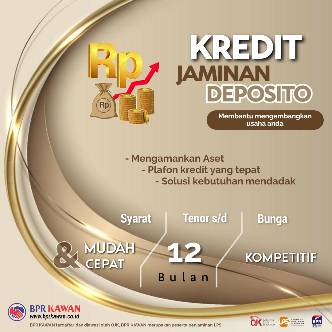 Kredit Jaminan Deposito adalah fasilitas kredit dalam valuta rupiah yang diberikan kepada calon debitur dengan satu satunya agunan berupa deposito berjangka yang diterbitkan oleh Bank.